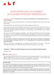 Loi Robert du 21 décembre 2021 relative aux bibliothèques et au développement de la lecture publique : Mode d'emploi / Association des bibliothécaires de France