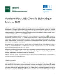 Manifeste IFLA-UNESCO sur la Bibliothèque Publique / IFLA, UNESCO